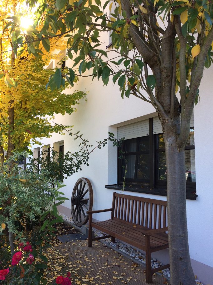 Vor dem Haus befindet sich eine kleine Sitzecke.
