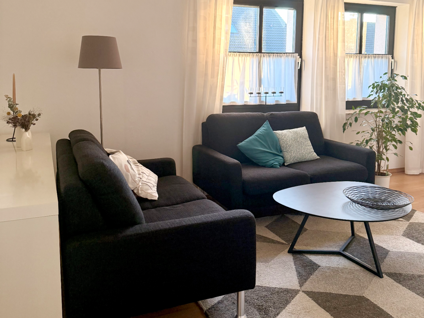 Das gemütliche und moderne Wohnzimmer ist mit einer Sitzecke sowie TV/Sat ausgestattet – für entspannte Abende.